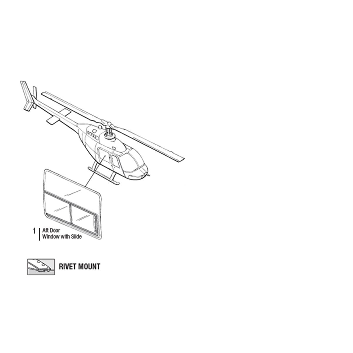 Aft Window w/Slide RH |P/N: 206L-1005-2 is designed for Bell model : 206A, 206B, 206L, 206L1, 206L3, 206L4