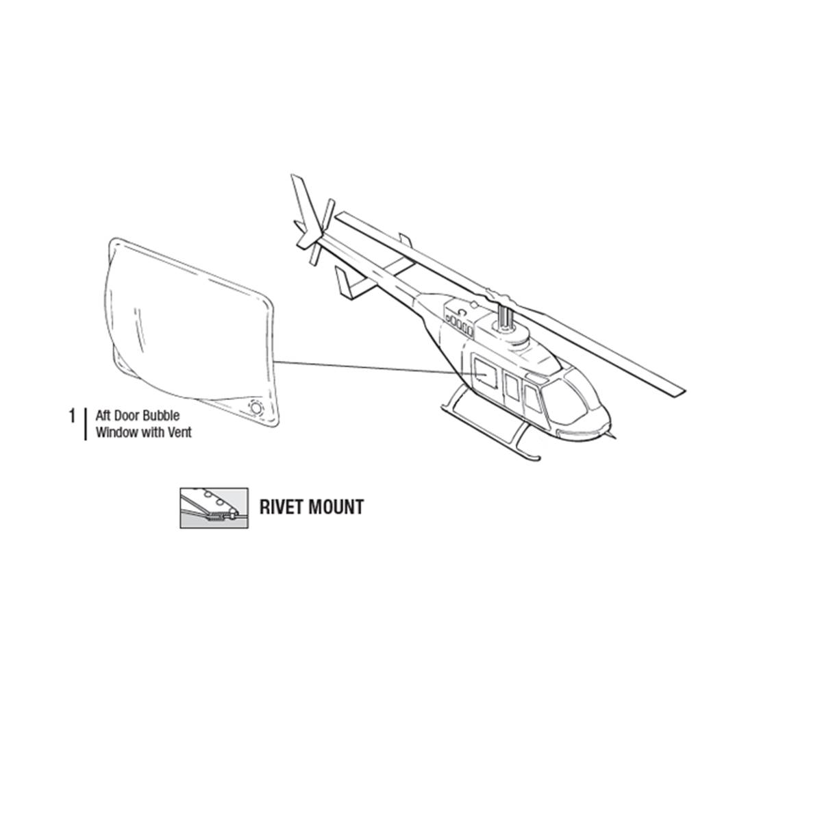 Aft Bubble Window w/Vents LH |P/N: 206L-1011-1 is designed for Bell model : 206A, 206B, 206L, 206L1, 206L3, 206L4