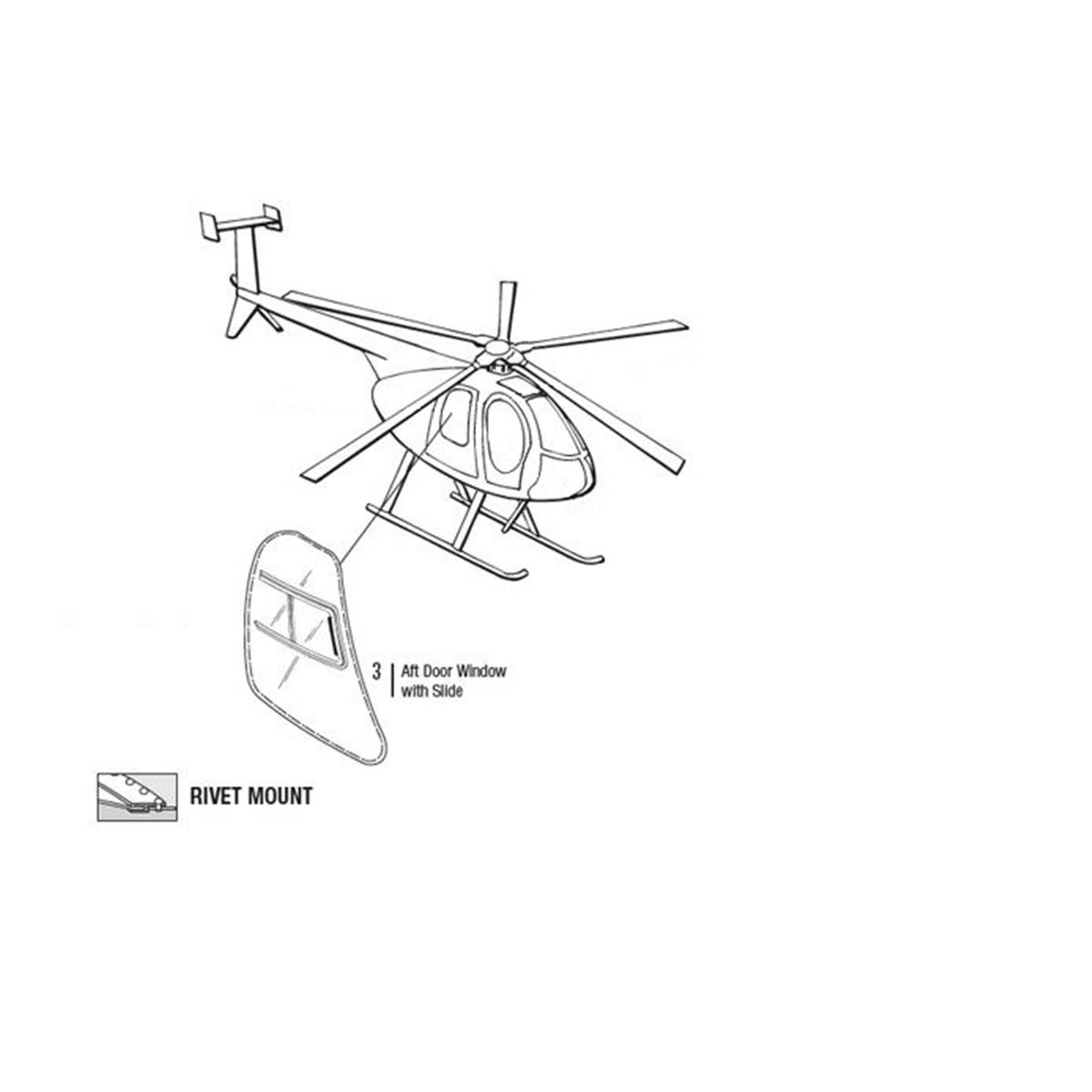 Aft Door Window w/Slide LH |P/N: 369-3506-3 is designed for MD models: 500C, D, E, F, FF