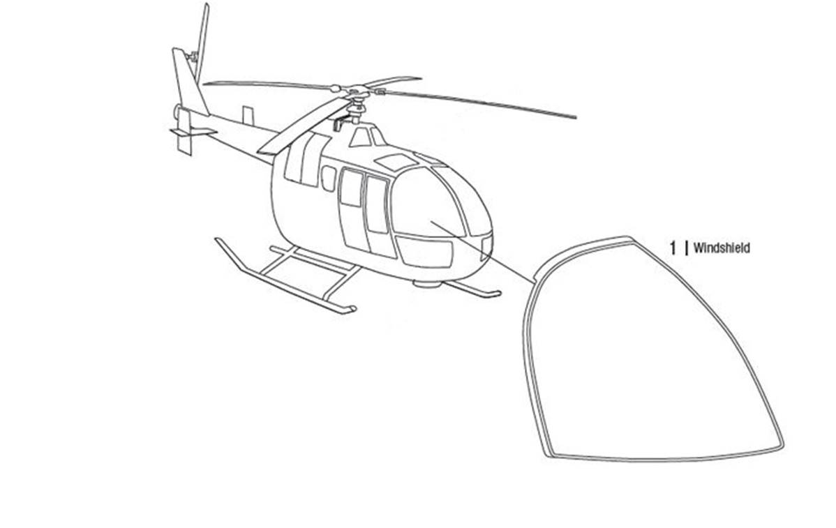 Windshield RH |P/N: BO105-1001-2 is designed for Airbus model: BO105A, C, S, LS A-1, LS A-10