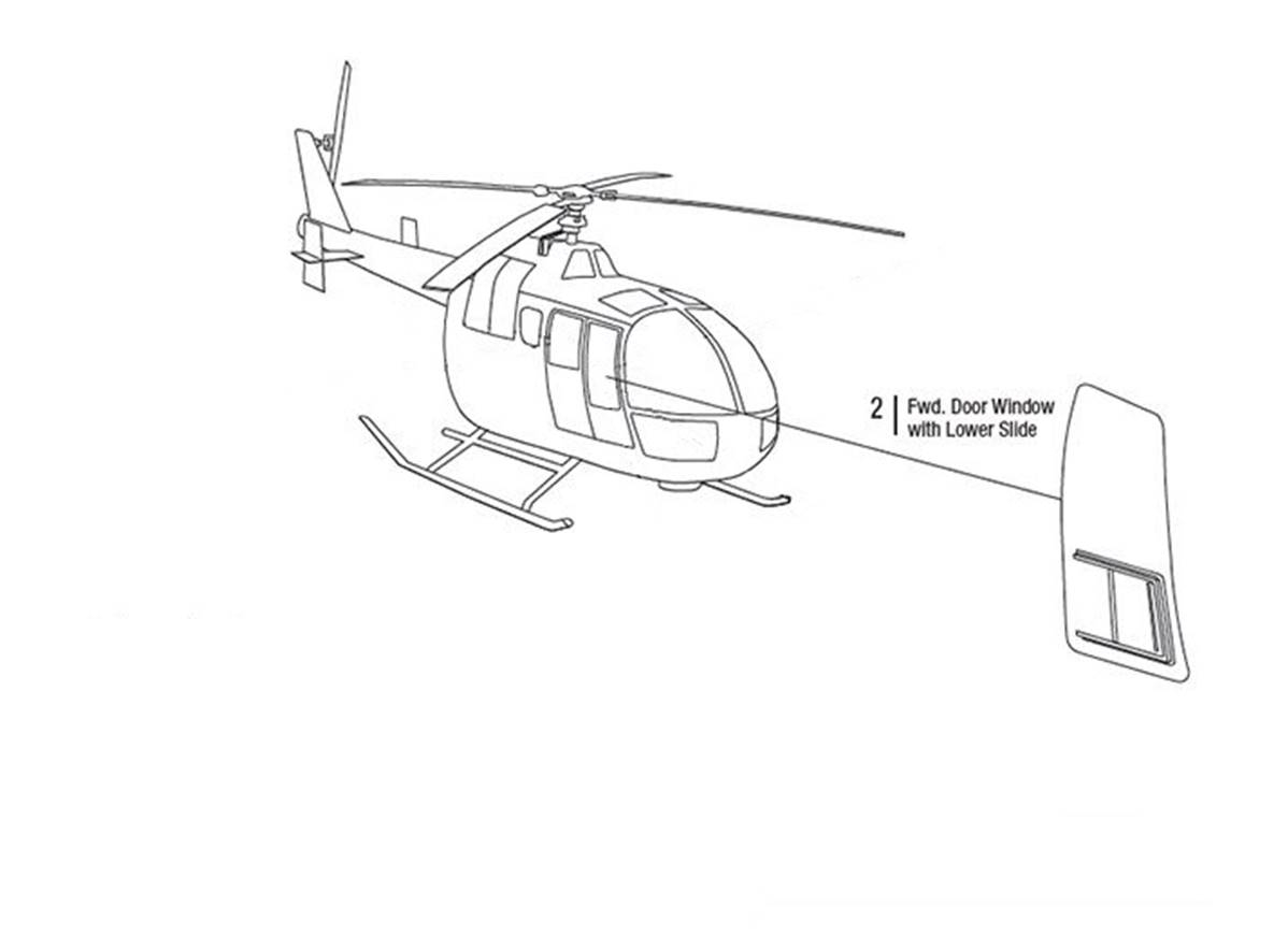 Fwd Door Window w/Lower Slide LH |P/N: BO105-1004-1 is designed for Airbus model: BO105A, C, S, LS A-1, LS A-15