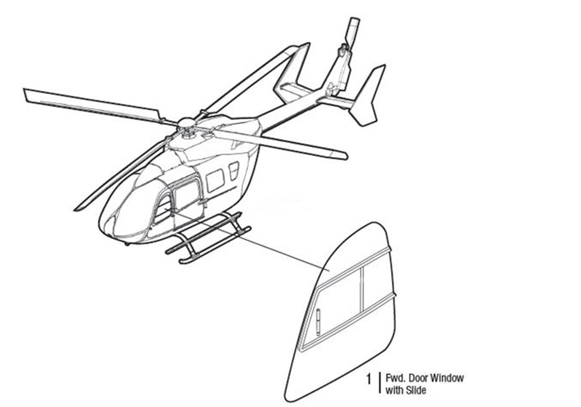 Fwd Door Window w/Slide LH |P/N: EC145-1004-2Airbus model: BK117 C-2 (EC145)