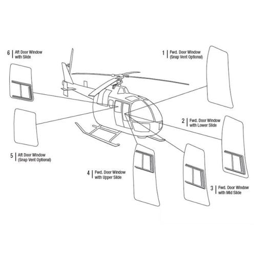 TECH-TOOL PLASTICS|FWD. DOOR, AFT DOORS WITH SLIDES AND VENTS|AIRBUS BO105A, C, LS, A-1, LS, A-3